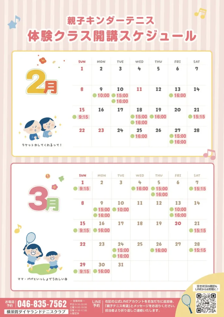 お電話または公式LINEのメッセージで【親子クラス希望】と送信してください。