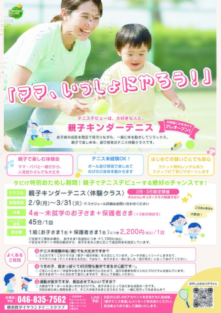 お電話または公式LINEのメッセージで【親子クラス希望】と送信してください。