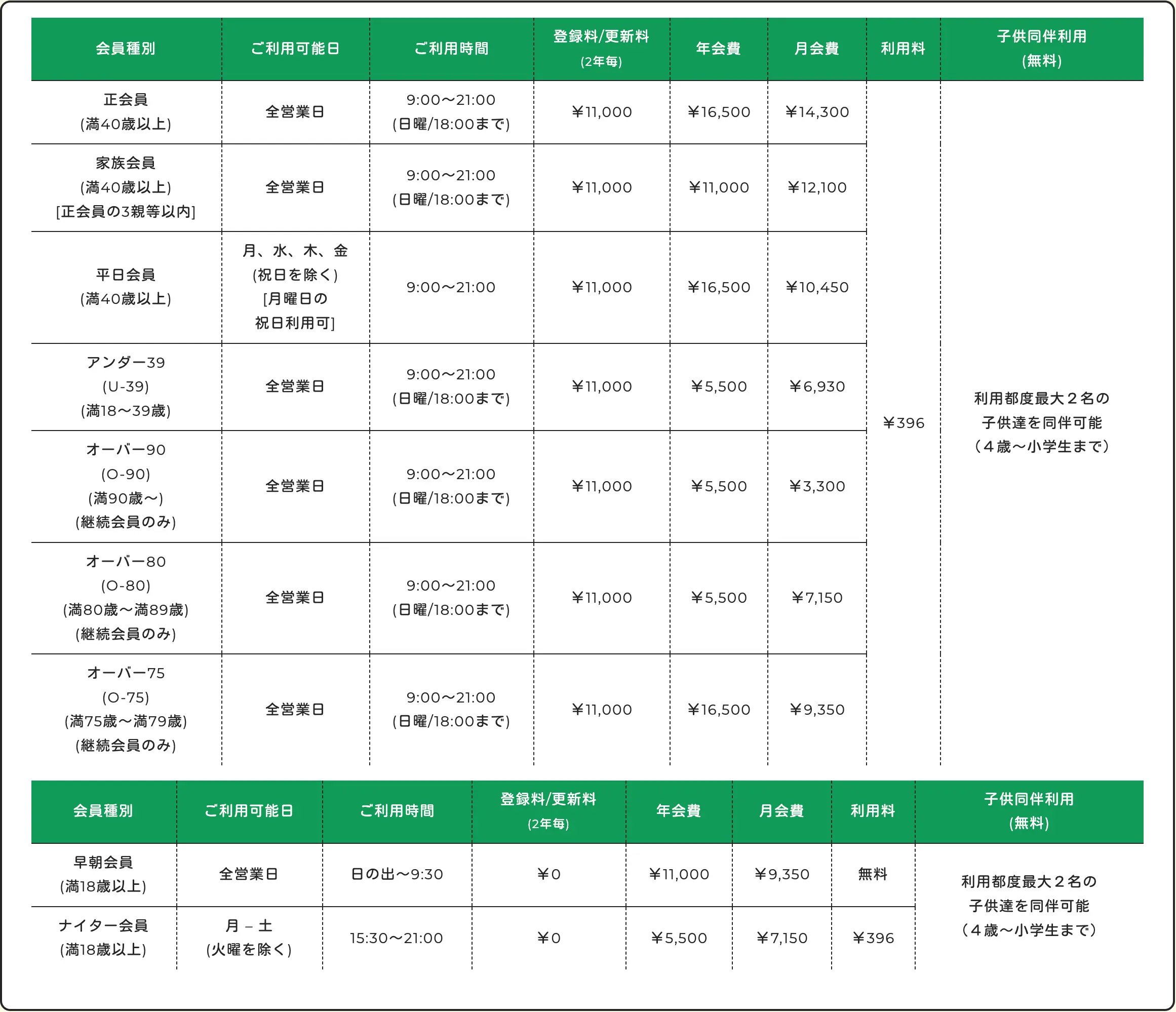 年会費 月会費 利用料 子供同伴利用